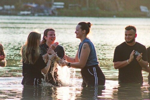 One of our students being water baptized at